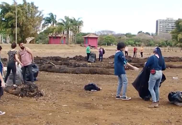 Decenas de voluntarios recolectaron cerca de cinco toneladas de desechos y basura en el lago del Parque La Sabana.