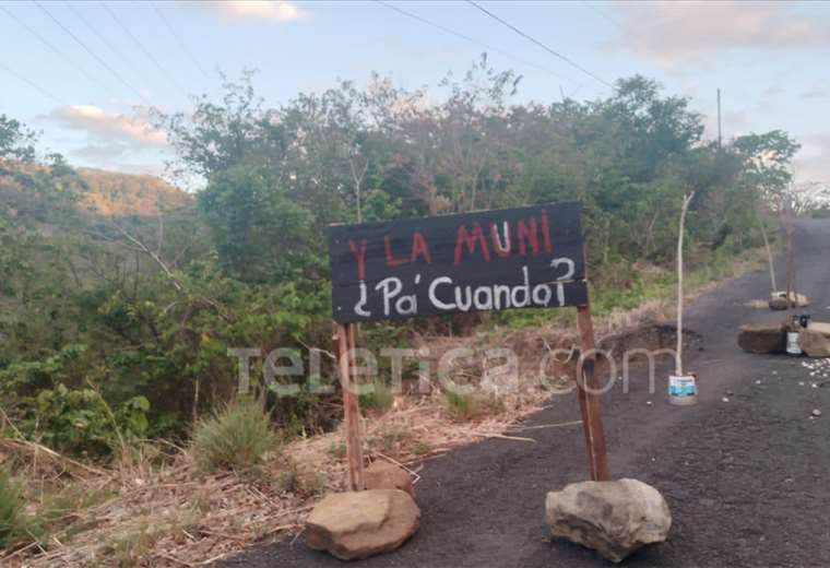 Un curioso letrero con la frase "¿Y la muni pa' cuándo?" fue colocado al lado de un hueco en el sector de Solania, en Tilarán de Guanacaste, con el fin de protestar ante la aparente inacción de las autoridades locales.