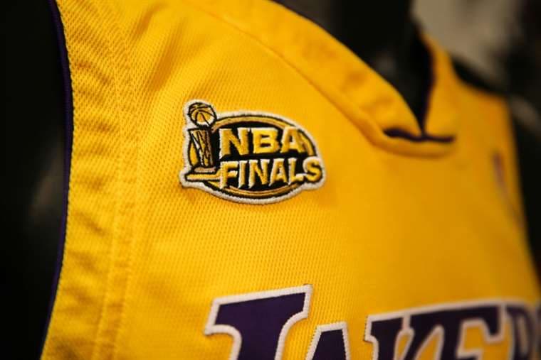 Vendida por una propietaria anónima, Kobe Bryant fue inmortalizado con esta camiseta amarilla y violeta el 23 de abril de 2008, cuando celebraba un lanzamiento de tres puntos contra los Denver Nuggets. Una imagen que los grafiteros reprodujeron en las calles de muchas ciudades y en particular en Los Ángeles.