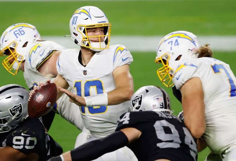 Las Vegas, Estados Unidos | El mariscal de campo Justin Herbert completó 22 de 32 pases para 314 yardas con dos touchdown para encaminar este jueves en el football americano de la NFL a los Chargers de Los Angeles en un triunfo de 30-27 en tiempo extra sobre los Raiders de Las Vegas.