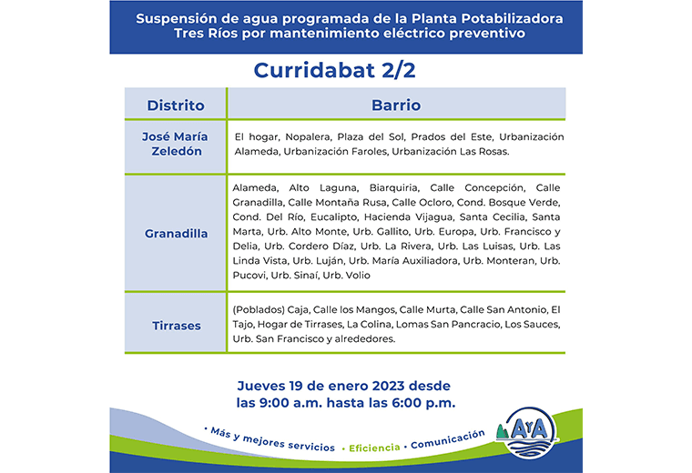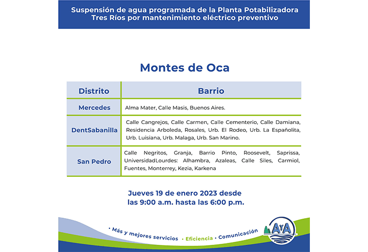 Se trata de las localidades de San José centro, Desamparados, La Unión, Montes de Oca y Curridabat.