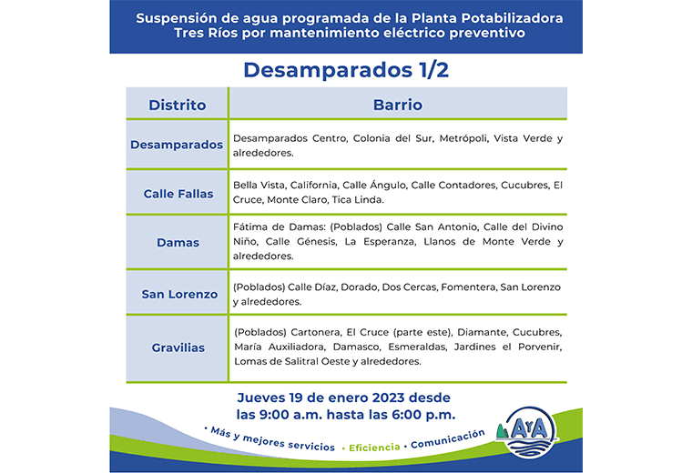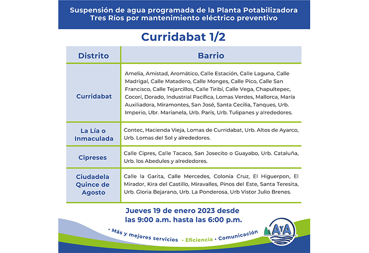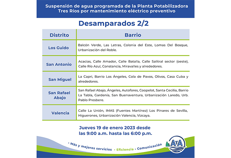 Los trabajos de mantenimiento en la planta de Tres Ríos, la más grande del país, obligan al AyA a suspender el servicio de abastecimiento. Aquí le contamos cuáles son los cantones afectados.