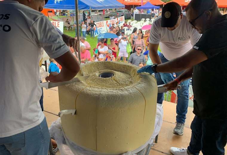 Este domingo, en la expoferia del Queso de Turrialba, se partió el queso más grande que se ha producido en el país, un queso de casi 300 kilogramos.