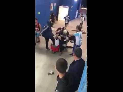 Imágenes grabadas con un teléfono móvil mostraron especialmente a dos aficionados croatas en el suelo, golpeados con puñetazos y patadas por cuatro argentinos, en un pasillo de acceso a las tribunas del estadio de Nizhi Nóvgorod.