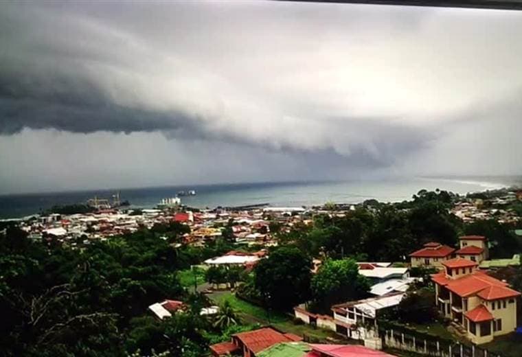 Una cámara de Telenoticias capturó el momento cuando la llamada "línea de tormenta" pasó sobre la costa y el centro del cantón central limonense.
