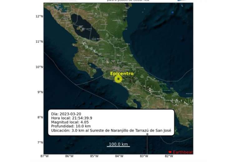 El movimiento fue registrado tres kilómetros al sureste de Naranjillo de Tarrazú, según el Observatorio Vulcanológico y Sismológico de Costa Rica (OVSICORI).