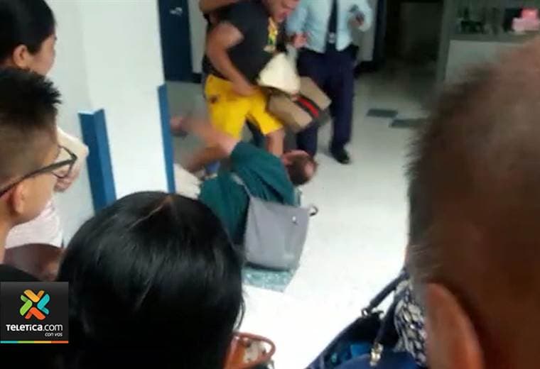 En el video los hombres se pelean delante de muchas personas que esperan ser atendidas en dicha sección.