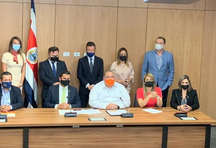 Esa posición se dio a conocer hoy en presencia de los diputados liberacionistas Daniel Ulate, Karine Niño, Franggie Nicolás, María José Corrales y Roberto Thompson; así como Pedro Muñoz (PUSC), Silvia Patricia Villegas (PIN) y Dragos Dolanescu (independiente).
