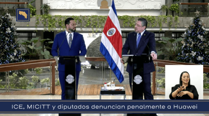 El Instituto Costarricense de Electricidad (ICE), el Ministerio de Ciencia, Tecnología y Telecomunicaciones (Micitt) y diputados oficialistas denunciaron penalmente a funcionarios del ICE y la empresa china Huawei por presuntas anomalías en contratos de las redes 3G y 4G.