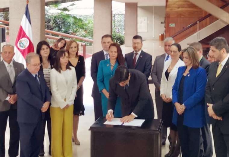 En el acto, celebrado en Casa Presidencial, estuvieron también presentes la ministra de Trabajo Geannina Dinarte y un nutrido grupo de diputados que impulsaron la iniciativa, entre ellos el proponente Carlos Ricardo Benavides.