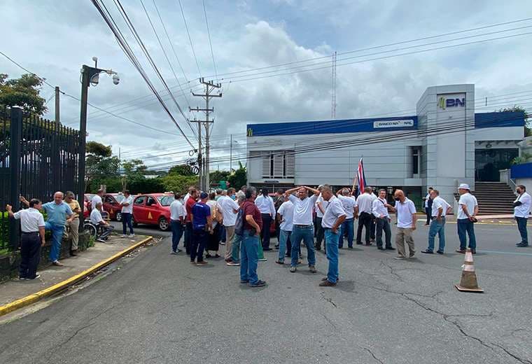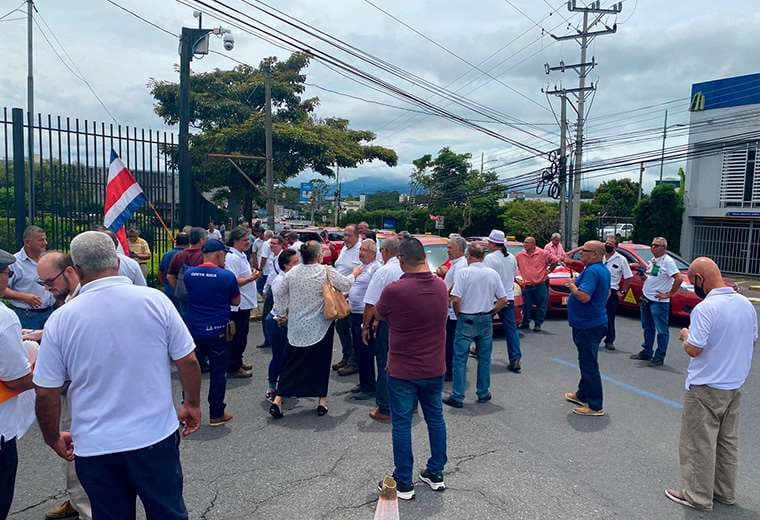 Un grupo de taxistas se manifiesta frente a Casa Presidencial a la espera de una reunión con el presidente Rodrigo Chaves y las autoridades de Gobierno sobre el futuro de las aplicaciones digitales de transporte de personas.