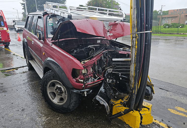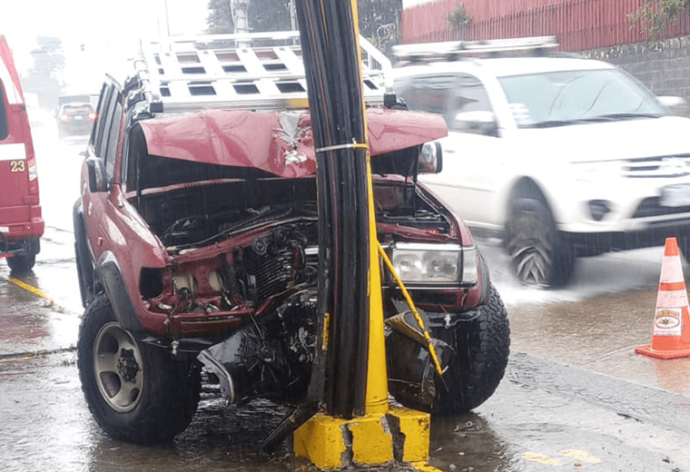 El carro 4x4 terminó estrellándose contra el poste de electricidad.