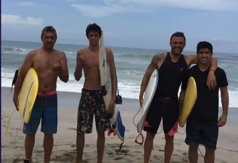 “El único bueno Pacho (su hijo) y mi hermano el segundo. Yo bastante flojo”, indicó entre risas mientras mostraba una foto posando con tablas de surf.
