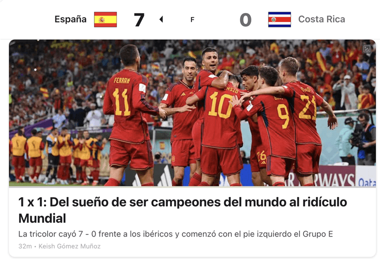 Este miércoles, Costa Rica debutó en el Mundial de Qatar 2022 con una humillante derrota de 7-0 contra el equipo de España. Desde antes que sonara el pitazo final, medios internacionales empezaban a publicar su lectura del encuentro, donde el elemento que más destacó fue la humillación que supuso esta derrota para la Tricolor.