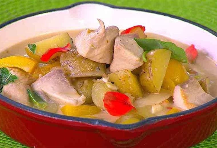Agregar la leche de coco y llevar a ebullición. Sazonar con sal y pimienta y dejar que la leche espese un poco con los mismos olores.