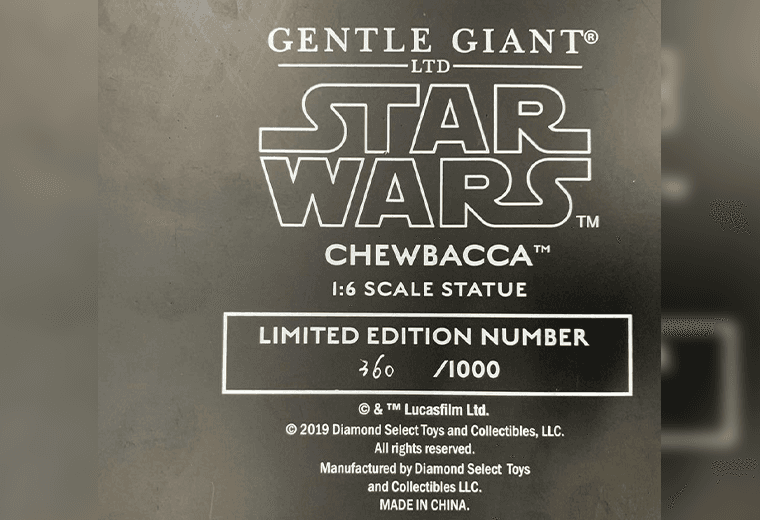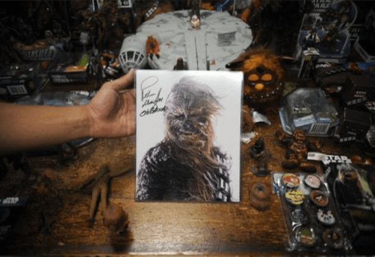 “Mi primera pieza y a la que le tengo más cariño es una figura original de 1977 de Chewbacca de marca Kenner que la tengo desde mi infancia y también un autógrafo del actor que dio vida a este personaje (Peter Mayhew) que me consiguió mi amigo Alexis Kung durante un Comic-Con en San Diego, California.