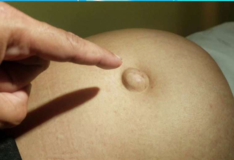 Esta hernia puede variar en tamaño y ser visible cuando la persona tose, llora o hace esfuerzos físicos.
