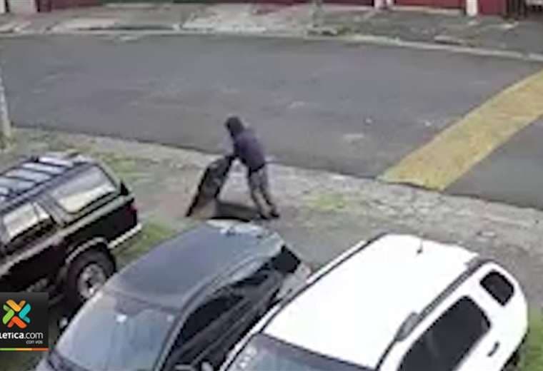 A plena luz del día, delincuente roba tapa del ICE en Hatillo