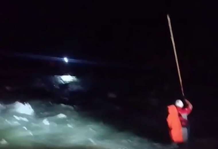 En los videos de la operación se aprecia la fuerza del agua, condición que, sumada a la falta de luz, complicó las labores de búsqueda.