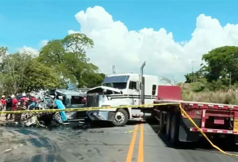 El hecho se registró alrededor de las 9:00 a.m. sobre la Ruta 1, cerca del cruce de Manolos, cuando —según las primeras versiones— el conductor del tráiler habría frenado de forma repentina, provocando que el vehículo pesado invadiera el carril contrario e impactara de frente al microbús (ver video adjunto de Telenoticias).