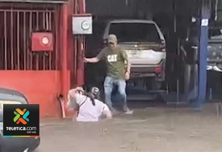 Una adulta mayor cayó a una zanja y sufrió varias heridas durante una inundación en Villa Bonita de Alajuela, la tarde de este jueves (ver video adjunto de Telenoticias).