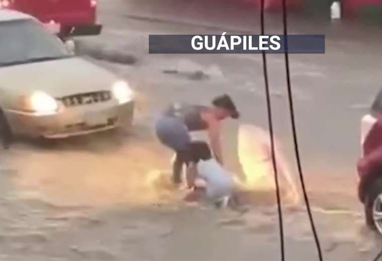 En San Mateo de Alajuela se dio el rescate de cuatro personas, entre ellas una niña de 3 años y una mascota que fueron sorprendidos por una cabeza de agua.
