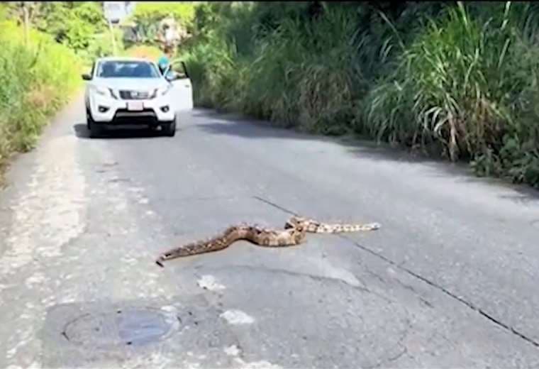 Según los expertos, la serpiente puede medir poco más de 4 metros de largo. La enorme culebra hizo frenar incluso el tránsito.