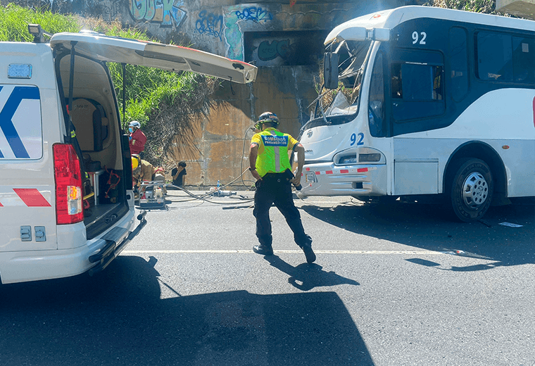 La colisión fue reportada a la Cruz Roja a las 12:11 p. m. a dos kilómetros del gimnasio nacional hacia Escazú, en la Ruta 27.