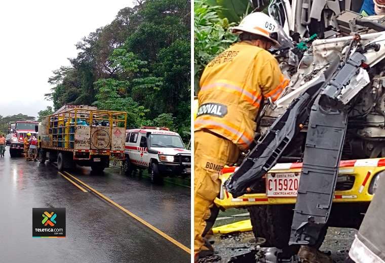 El choque entre dos camiones dejó como saldo una persona herida de gravedad en Palmar Norte.