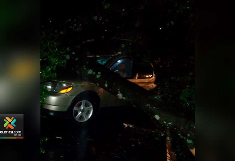 Un hombre y una mujer resultaron heridos luego de que un enorme árbol cayera encima del carro en el que viajaban por una carretera en Sarchí.