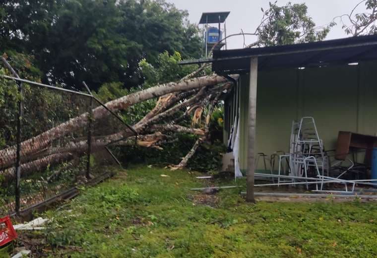Un árbol de gran tamaño cayó sobre una escuela en Corredores de Puntarenas.