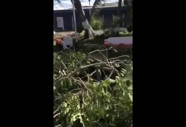 En el primer sitio se ve árboles arrancados de cuajo y aceras destruidas así como techos y tendido eléctrico afectado.