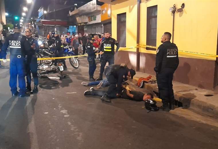 El primero reporte se dio en pleno centro de San José, en avenida 8, calle 8. De acuerdo con el reporte de las autoridades, dos hombres que viajaban en una motocicleta le dispararon a otro y lo matan en el sitio.