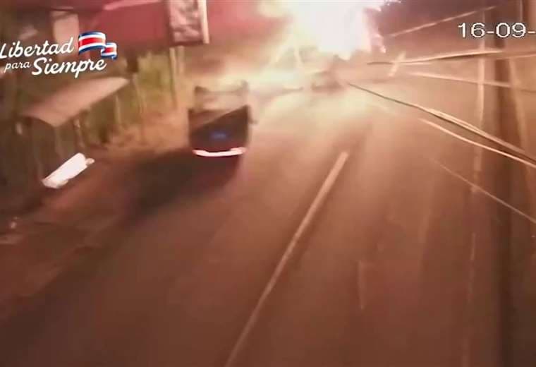 Un video captado por cámaras de seguridad muestra el momento en que un vehículo colisiona violentamente contra un poste del tendido eléctrico, dejando sin luz a miles de vecinos en San Pablo de Heredia.