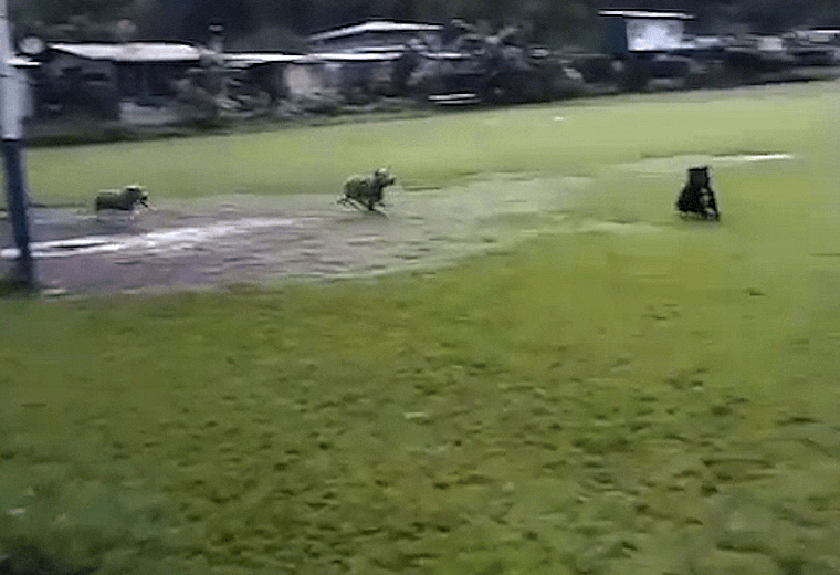 En el video, publicado en redes sociales, se observa cómo el hombre, vecino de Golfito, suelta a sus perros American Stafford adrede y estos atacan a otro perro que estaba caminando por la calle.