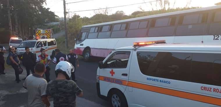 13 personas tuvieron que ser valoradas por Bomberos y Cruz Roja luego de que el conductor de un autobús de transporte público perdiera el control y se fuera contra un paredón en Heredia.