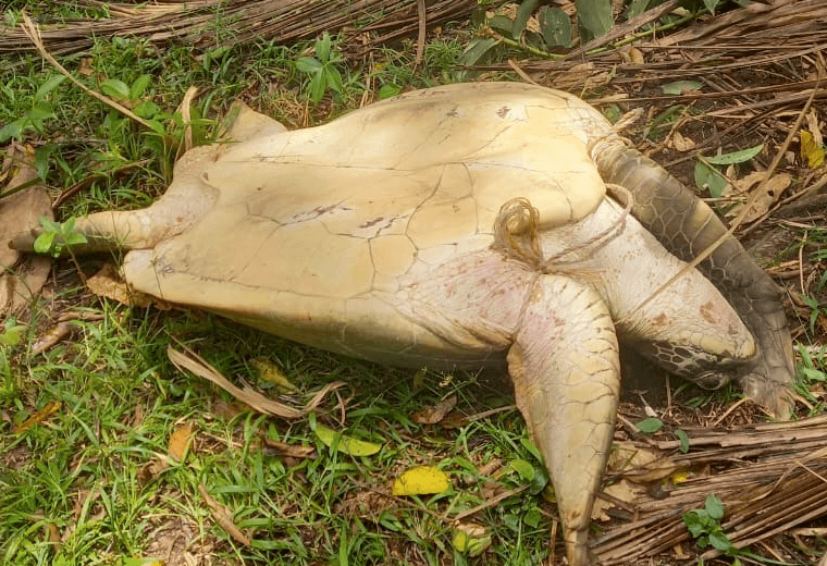 Autoridades rescatan a dos tortugas verdes que iban a ser destazadas