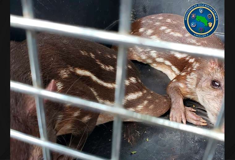 Un trabajo conjunto entre la Policía de Fronteras y guardaparques del Sistema Nacional de Áreas de Conservación del Minae permitió rescatar loras y tepezcuintles que se encontraban en cautiverio.