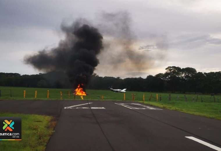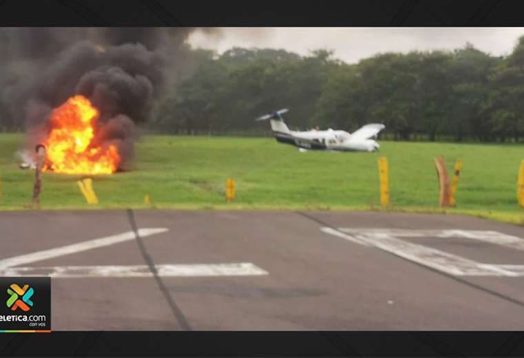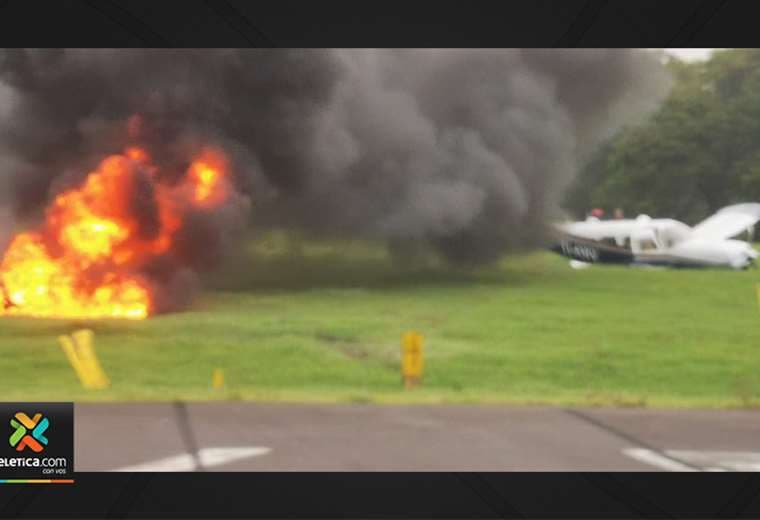“La avioneta pegó el ala derecha contra una malla, esta se desprende, de inmediato alza llamas y la aeronave se sale de la pista”, explicaron a Teletica.com en la Central de Comunicaciones de Bomberos.