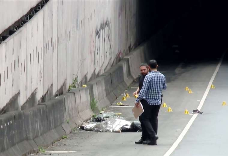 Oficiales de la Fuerza Pública custodian la escena a la espera de los agentes judiciales para las pesquisas correspondientes y levantamiento del cuerpo.
