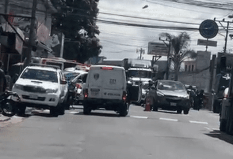 Oficiales de la Fuerza Pública custodian la escena a la espera de los agentes judiciales.