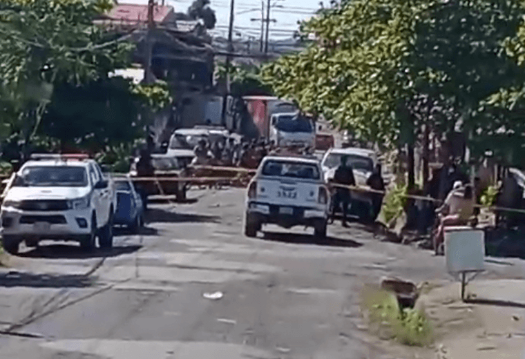 Oficiales de la Fuerza Pública custodian la escena a la espera de los agentes judiciales para la investigación de los hechos.