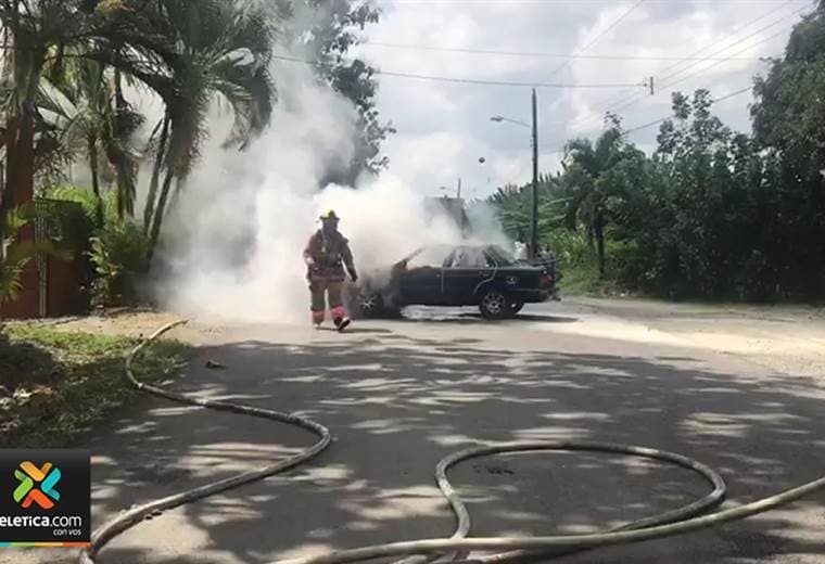 El Cuerpo de bomberos atendió un vehículo en llamas en Batán de Limón.