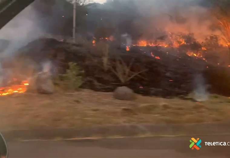 Desde las 5:36 de la tarde los bomberos atienden la emergencia que se presenta cerca de la autopista ruta 27.