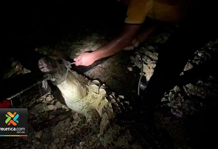 Luego de escapar el día de ayer, los bomberos pudieron capturar horas después a un gran cocodrilo que fue visto en el centro de Limón.