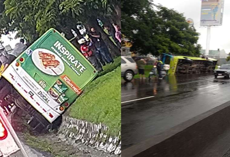 Bus con pasajeros vuelca aparatosamente en la General Cañas