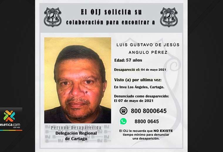 Las autoridades buscan a hombre de 57 años quien desapareció desde el pasado martes 4 de mayor en Cartago.