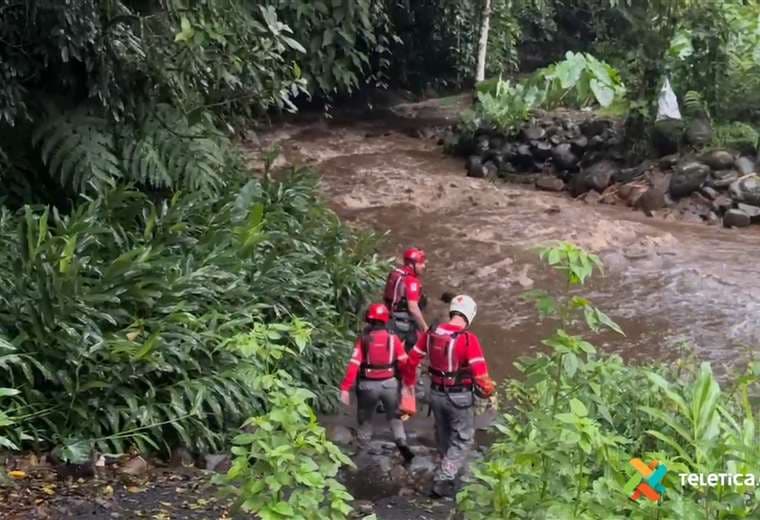 La Cruz Roja realiza la búsqueda de un hombre, quien, al parecer, fue arrastrado por la corriente de un río en Platanares de Moravia, San José.