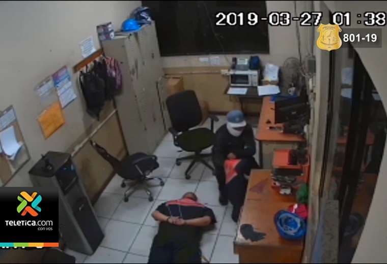 En la grabación se observa a uno de los sujetos, que inclusive tiene al guarda del lugar amordazado.