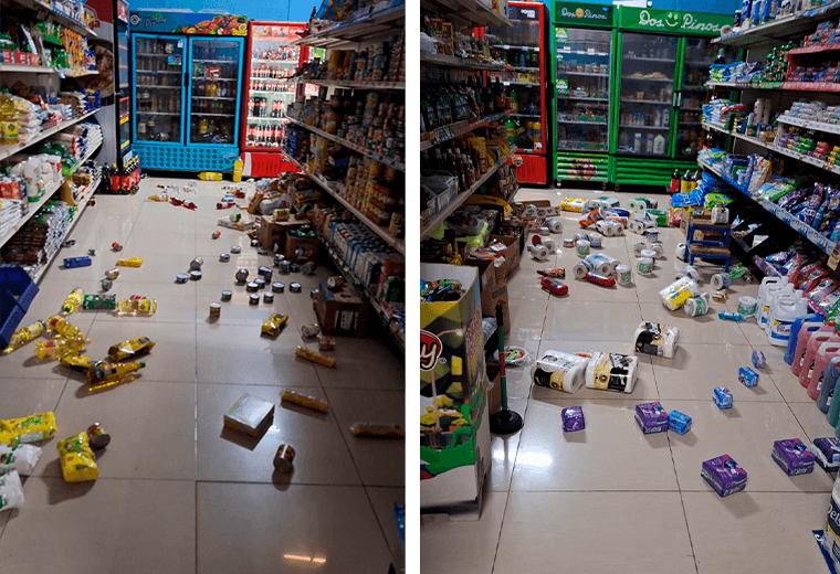 Videos y fotos enviados a Teletica.com muestran, por ejemplo, la afectación en supermercados, donde la mercadería se cayó de los estantes.